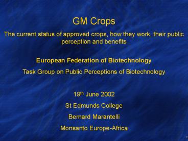 Biotechnology 19th June 2002 St Edmunds