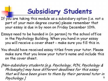 <Notice: Removed> Subsidiary Students PowerPoint PPT Presentation