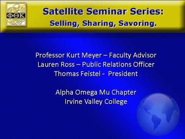 Satellite Seminar Series Selling, Sharing,