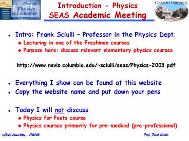 • http//www.nevis.columbia.edu/sciulli/seas/Physic