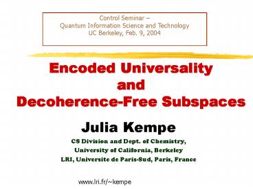 <Notice: Removed> Encoded Universality and DecoherenceFree Subspaces PowerPoint PPT Presentation