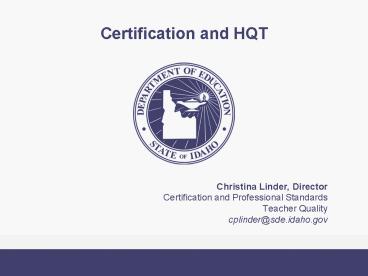 <Notice: Removed> Certification and HQT PowerPoint PPT Presentation