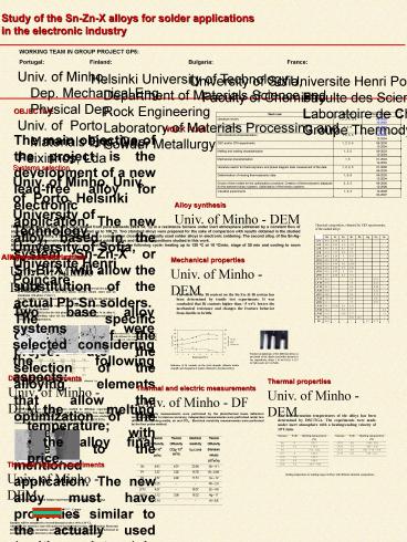 Title: Study of the SnZnX alloys for solder applications