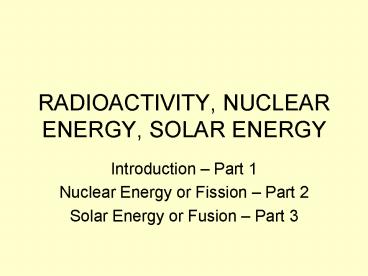 <Notice: Removed> RADIOACTIVITY, NUCLEAR ENERGY, SOLAR ENERGY PowerPoint PPT Presentation