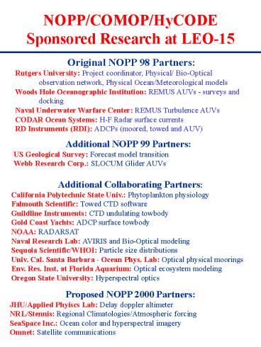Original NOPP 98 Partners: PowerPoint PPT Presentation