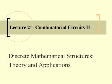 Lecture 21: Combinatorial Circuits II PowerPoint PPT Presentation