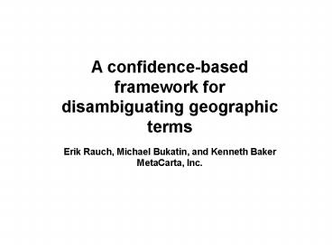 and Kenneth Baker MetaCarta, Inc.