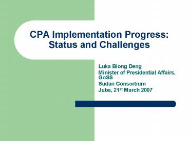 <Notice: Removed> CPA Implementation Progress: Status and Challenges PowerPoint PPT Presentation