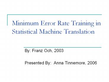 Minimum%20Error%20Rate%20Training%20in%20Statistical%20Machine%20Translation PowerPoint PPT Presentation