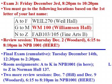 L to Z in Norman Hall 137. - Two more review sessions Dec. 7 (Hill) and Dec.