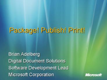 • Any .NET 3.0 Visual tree can be serialized as XPS
