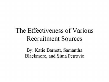 <Notice: Removed> The Effectiveness of Various Recruitment Sources PowerPoint PPT Presentation
