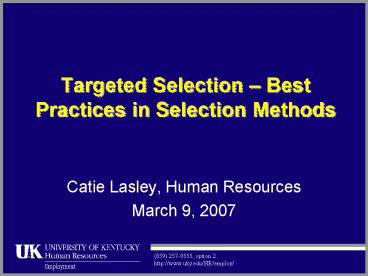 Title: Targeted Selection Best Practices in Selection Methods