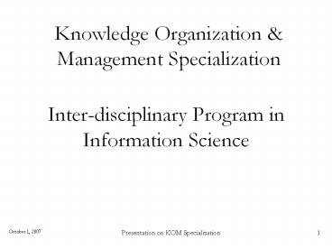 Knowledge Organization Management Specialization