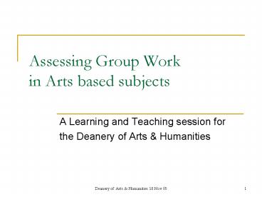 Assessing Group Work in Arts based subjects PowerPoint PPT Presentation