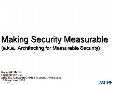 1Making Security Measurable (a.k.a.,