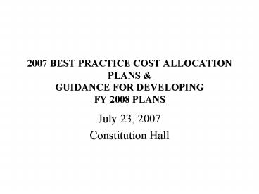 <Notice: Removed> 2007 BEST PRACTICE COST ALLOCATION PLANS PowerPoint PPT Presentation