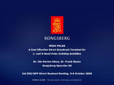 cost stations will support Direct Broadcast - Support Future satellites (NPP, NPOESS, FY-3)