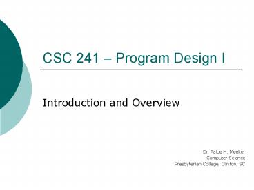 CSC 241 Program Design I PowerPoint PPT Presentation