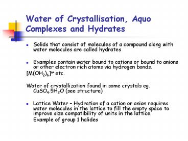 Title: Water of Crystallisation, Aquo Complexes and Hydrates