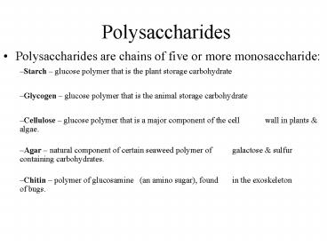 - Polysaccharides are chains of five or more