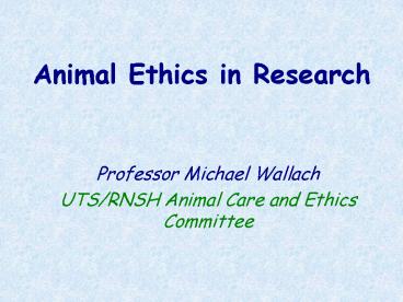 Animal Ethics in Research PowerPoint PPT Presentation