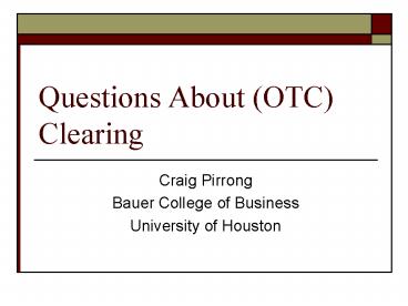 <Notice: Removed> Questions About (OTC) Clearing PowerPoint PPT Presentation