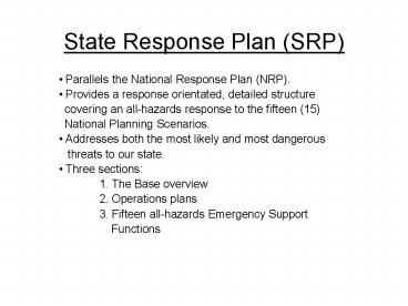 State Response Plan SRP PowerPoint PPT Presentation