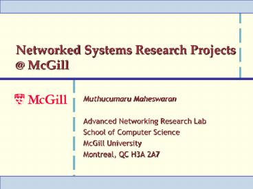 1Networked Systems Research Projects _at_ McGill