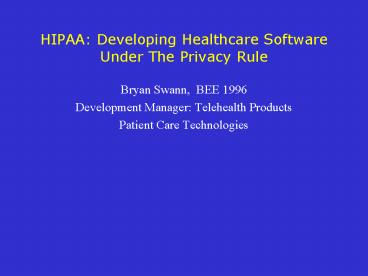 HIPAA: Developing Healthcare Software Under The Privacy Rule PowerPoint PPT Presentation