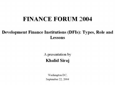 FINANCE FORUM 2004 PowerPoint PPT Presentation