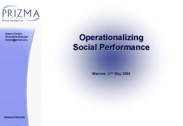 Title: Operationalizing Social Performance Warsaw, 27th May 2004
