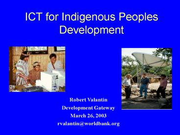 against Racism, WSIS) - Support Distance Learning program for indigenous