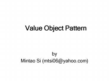 Value Object Pattern PowerPoint PPT Presentation