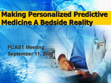 1Making Personalized Predictive Medicine A Bedside