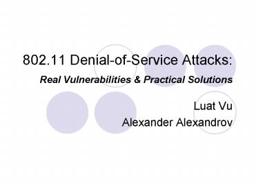 Title: 802'11 DenialofService Attacks: Real Vulnerabilities