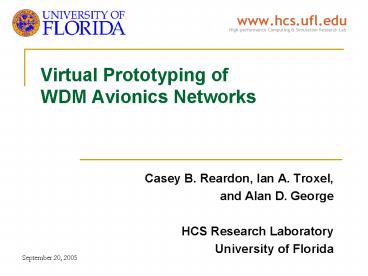 Virtual Prototyping of WDM Avionics Networks PowerPoint PPT Presentation