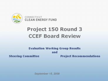 September 15, 2008. 2. Project 150 History. Evaluation Process. Evaluation Working Group (EWG) ... Fuel cell in CHP configuration. Site control not secured ... – PowerPoint PPT presentation