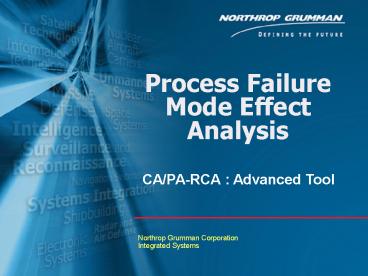 errors from a product or a process. - Identify each candidate Part or Process, list