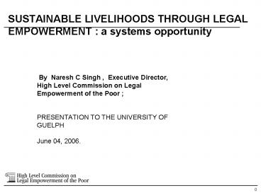 Title: SUSTAINABLE LIVELIHOODS THROUGH LEGAL EMPOWERMENT : a systems opportunity
