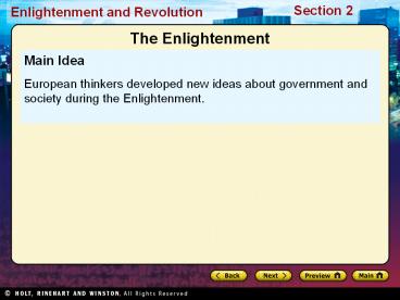 Main Idea European thinkers developed new ideas