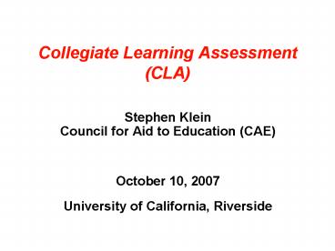 Title: Collegiate Learning Assessment CLA