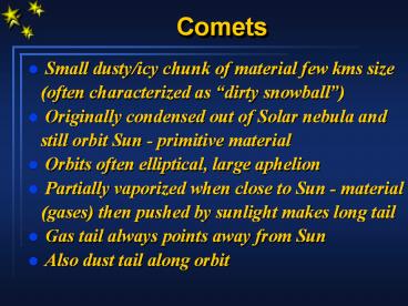 (often characterized as dirty snowball) - Originally condensed out of Solar nebula and