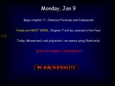 1Monday, Jan 9 Begin chapter 7 Chemical