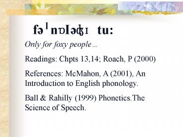 Roach, P (2000) References McMahon, A (2001), An