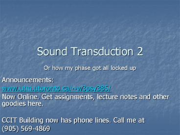 Sound Transduction 2 PowerPoint PPT Presentation