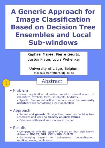 Raphaël Marée, Pierre Geurts, Justus Piater,
