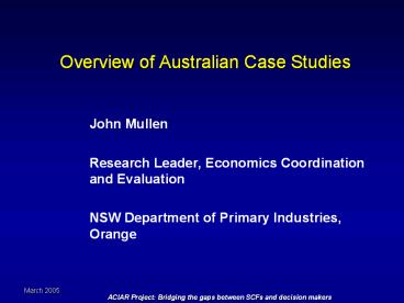 Overview of Australian Case Studies PowerPoint PPT Presentation