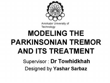 Title: MODELING THE PARKINSONIAN TREMOR AND ITS TREATMENT