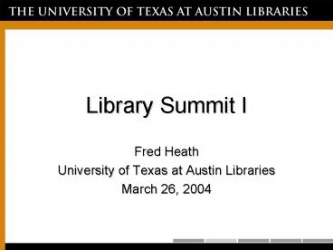 Title: Library Summit I